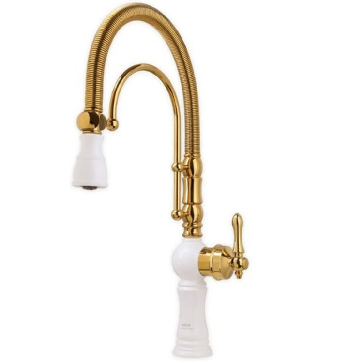 شیر ظرفشویی فنری ونوس سفید طلایی برند ایران گروه با ۷ سال گارانتی معتبر استاندارد ملی ایران تنه برنجی سنگین آبکاری درجه یک همراه با اقلام نصب