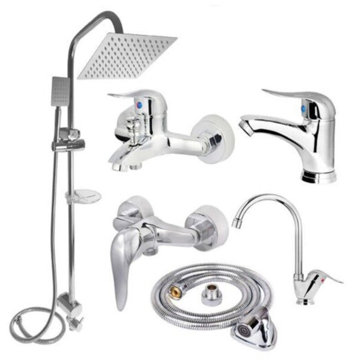 ست 6 تایی شیرآلات اردکی کاتریج 40 با علم دوش دو کاره و شیلنگ توالت ایران گروه
