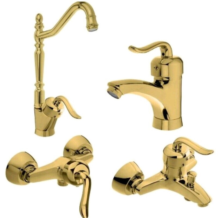 ست کامل شیرآلات طلایی مدل قاجاری برند ایران گروه دارای نشان استاندارد ملی دارای گارانتی ۵ساله معتبر شرکتی جنس بدنه برنجی وآبکاری درجه یک کارتریج ۴۰ همراه با لوازم نصب