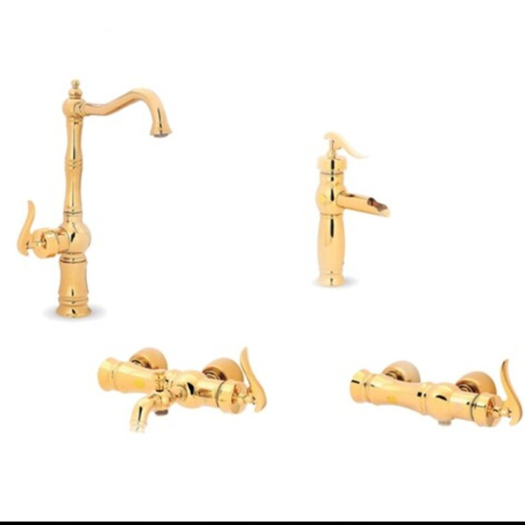 ست چهارتایی شیرآلات بیزانس طلایی برند ایران گروه با ۷ سال ضمانت استاندارد ملی ایران آبکاری درجه یک.